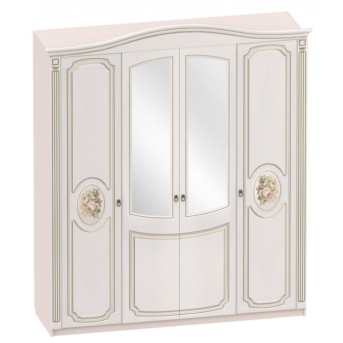 Шкаф четырехдверный Верона для спальни с распашными дверями - очень вместительная и практичная модель, выполненная в современном стиле в нежном цвете "Кофе10 /Капучино". Две средние двери с зеркалами, боковые - глухие. Внутри боковые секции - с полками для хранения белья и одежды, внутренние - со штангой для вешалок.