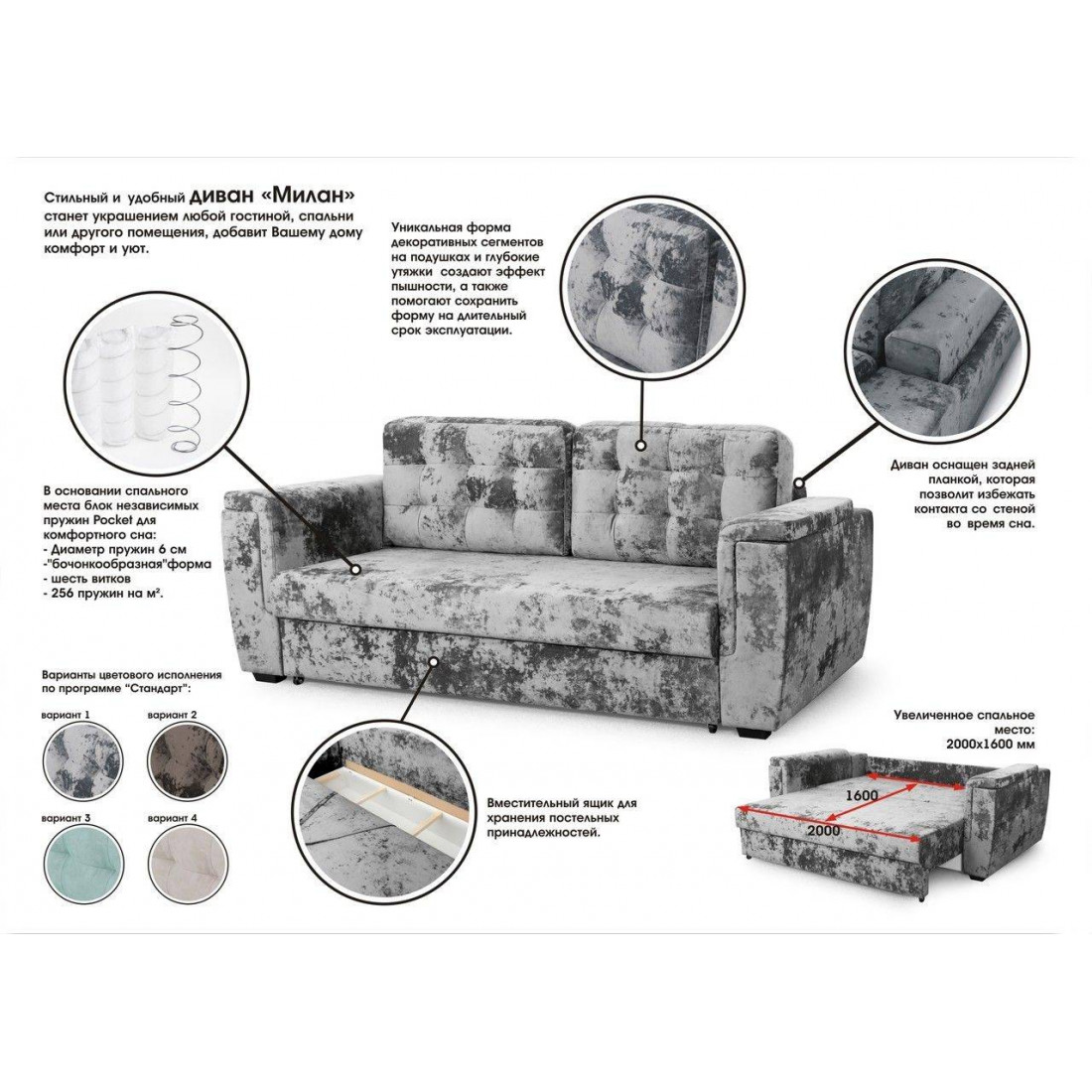 Стильный и удобный диван «Милан» станет украшением любой гостиной, спальни или другого помещения, добавит Вашему дому комфорт и уют.