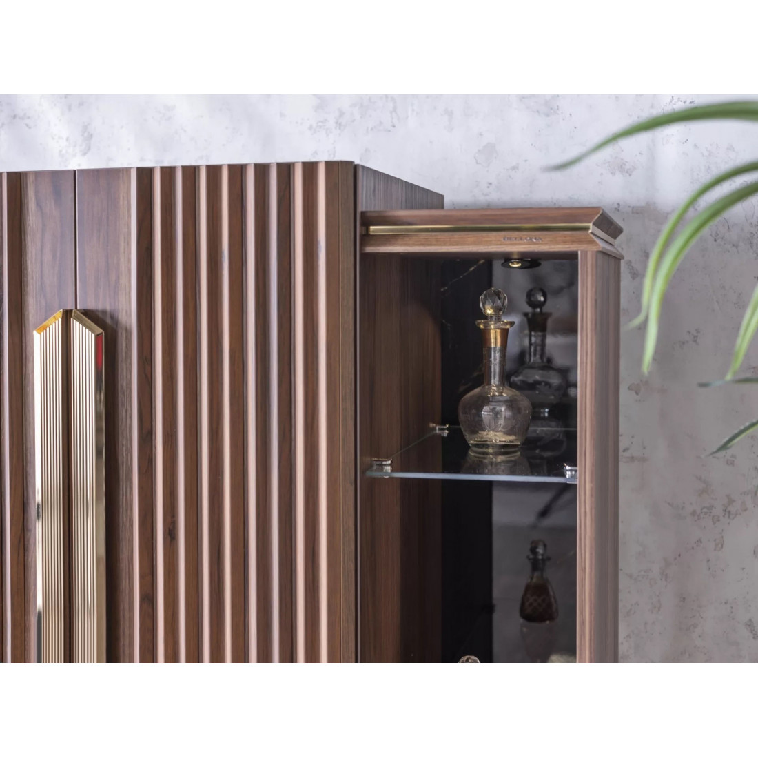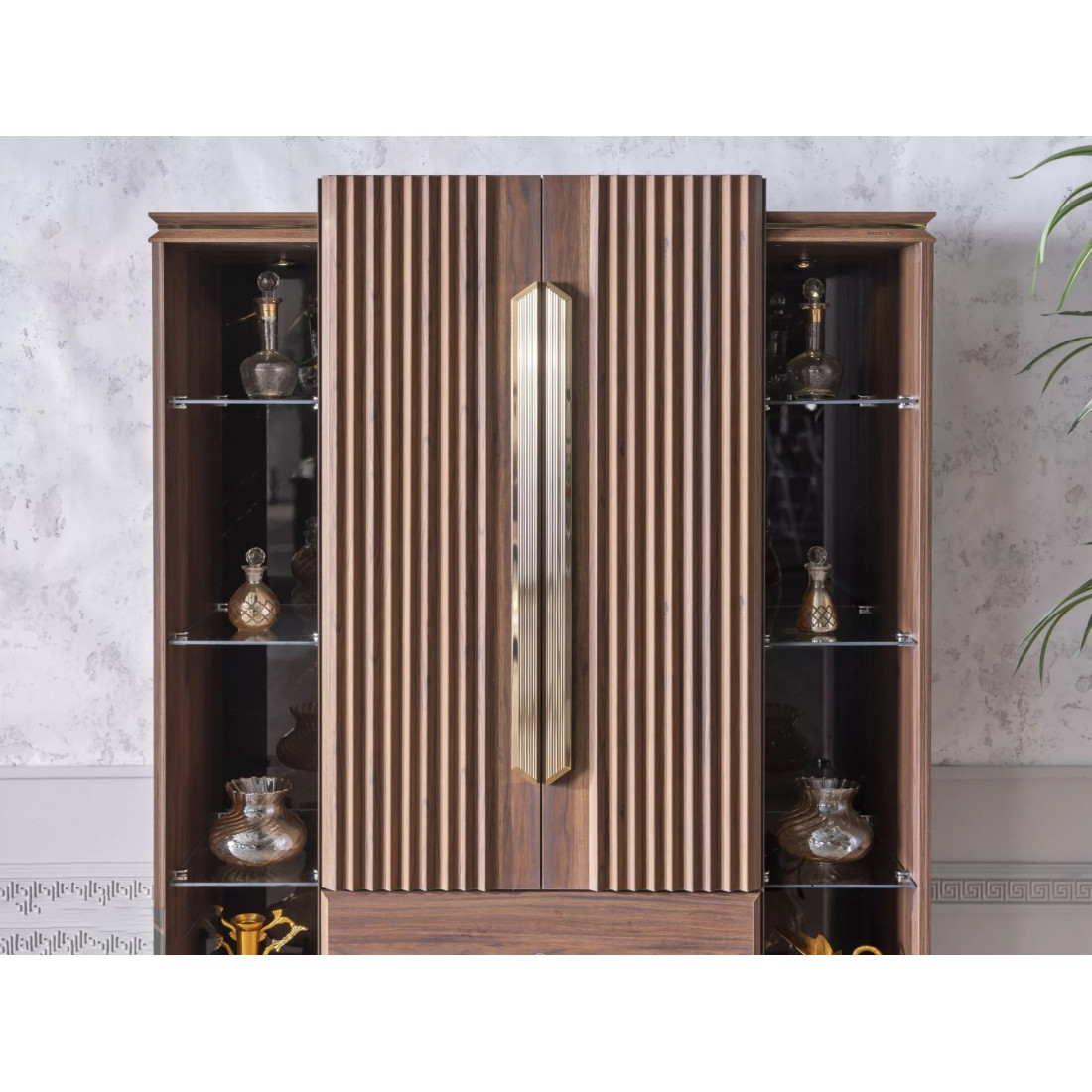 Двухдверный шкаф для посуды "Монтего" выполнен в современном стиле и украсит собой любую гостиную или столовую. В дополнение к современному стилю, цветовая палитра столовой "Монтего" представлена в ореховом цвете. Наш новый продукт выделяется своим особым дизайном, а также своими функциональными особенностями.
