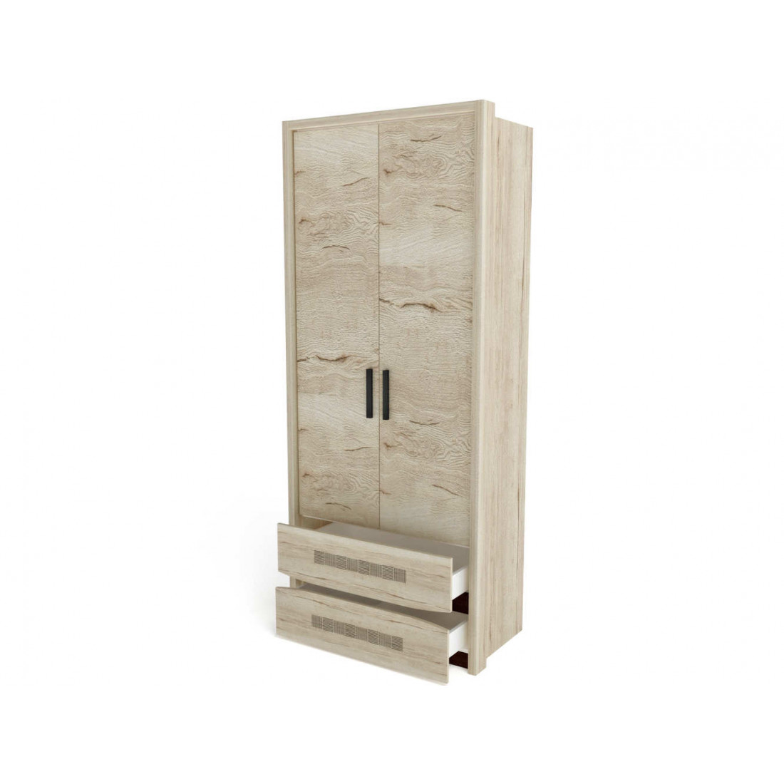 Шкаф двухдверный Мале - обладатель лаконичного и свежего дизайна. Он является представителем коллекции «Мале». В этой коллекции особое внимание уделено внешнему виду и тактильным ощущениям от прикосновения к мебели, схожей с натуральным деревом по рисунку и шероховатости. Деко