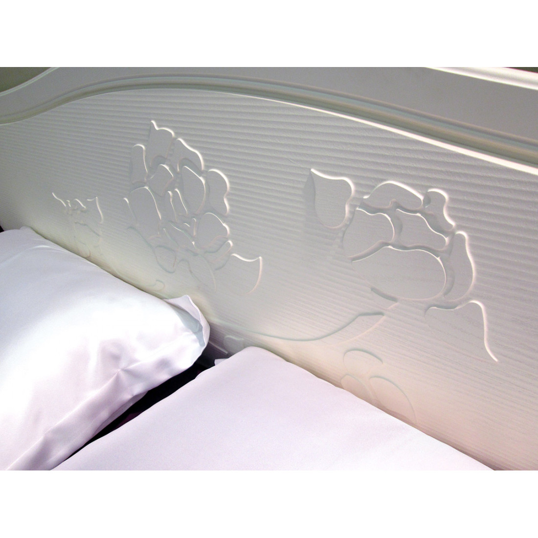Двуспальная кровать с ортопедическим основанием МН-218-01-180 серии Астория от белорусской фабрики Мебель-Неман привлекает эксклюзивными формами резного основания и эффектным дизайном спинки. Выбранный оттенок аристократичной слоновой кости с имитацией крашенного массива добавляет визуальной ценности изделию. Купить недорогую и стильную двуспальную кровать можно по недорогой цене, отдельно и дополнив другими элементами Астории.