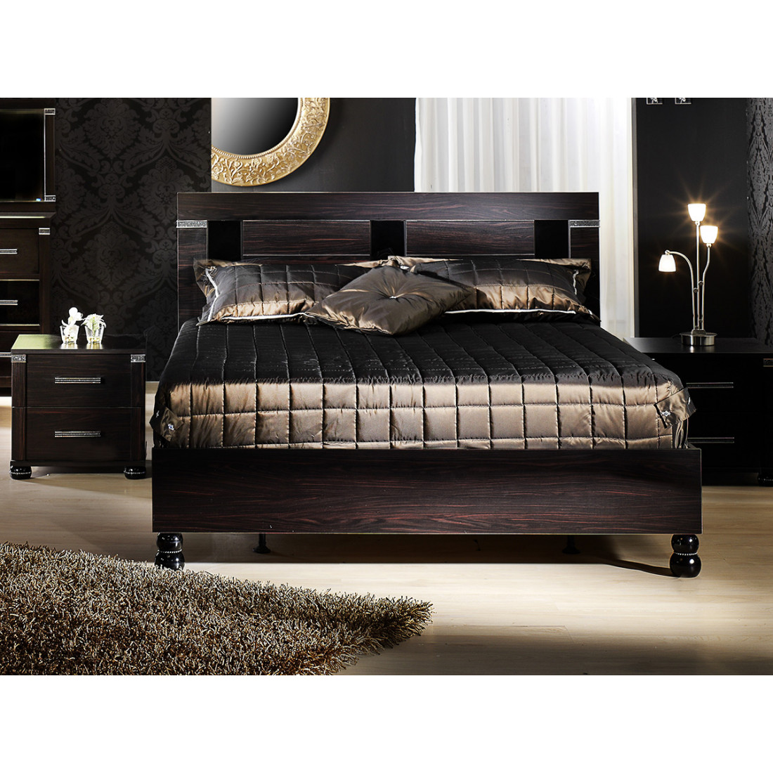 Двуспальная кровать со спинкой MIRA-26 (венге) серии Мира от Беллона наделена прочной конструкцией и лаконичным, респектабельным дизайном, вызывающим ассоциации с уверенным спокойствием и безмятежностью. Оригинальности и лоска модели придают ненавязчивые декоративные вставки с кристаллами Swarovski. Купить двуспальную кровать цвета венге можно в предлагаемых размерах – с шириной 1,5 м, 1,6 м или 1,8 м. Матрац приобретается отдельно.