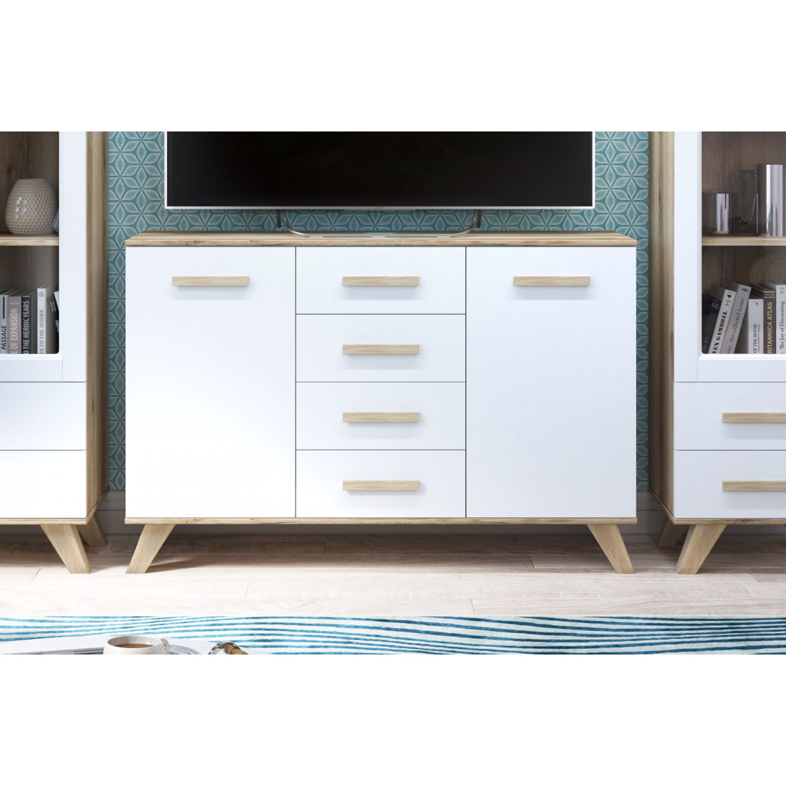 Комод 900 Вега Скандинавия (глянец, белый + дуб каньон)