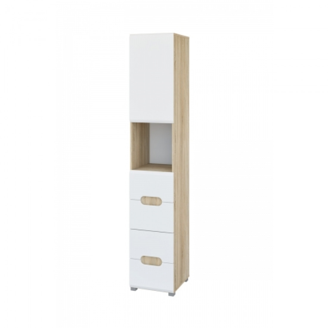 Фасад выполнен в привлекательном Белом полуглянце, который идеально сочетается с корпусом цвета Дуб сонома.