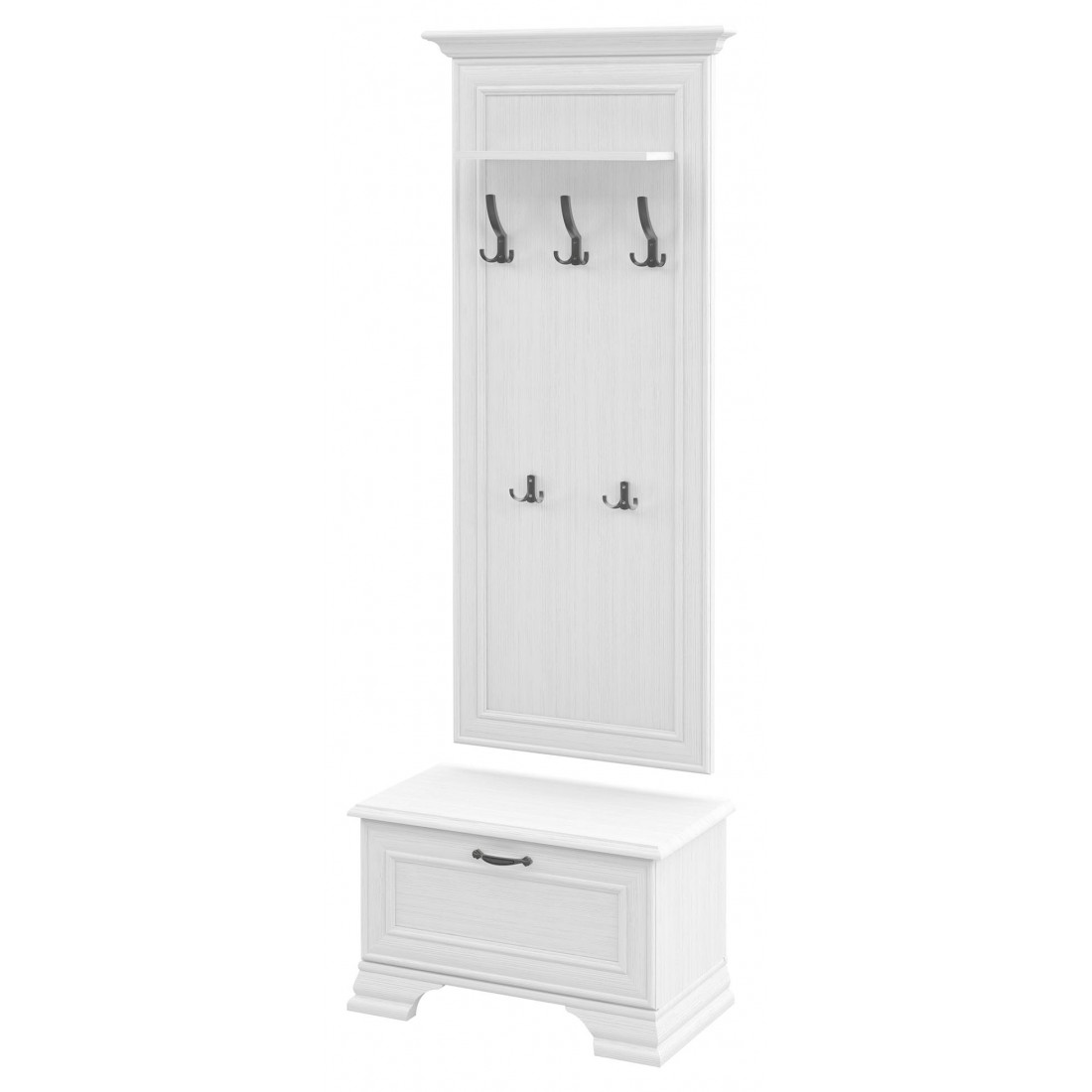 Мебель для прихожей Юнона от фабрики Мебель-Неман композиция 3 - новинка 2019 года в классическом стиле с отделкой структурной фактуры, обрамленная рамочным фасадом, где металлические ручки выгодно подчёркивают стиль и изящество, всегда актуален и востребован.
