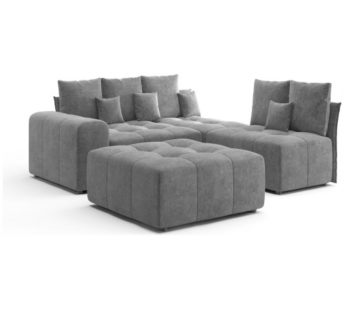 Модульный диван «Торонто» — это отличный вариант для тех, кому сложно подобрать монолитную конструкцию из-за сложной конфигурации помещения, а также тех, кто любит экспериментировать и часто делает перестановку. С его помощью можно легко изменить интерьер, превратив часть конструкции в пуф, кресло или софу.