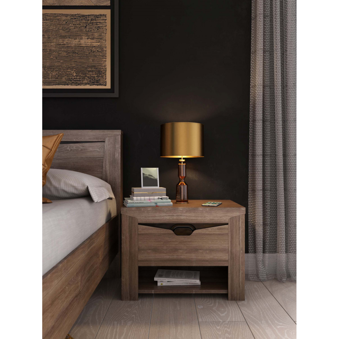 Прикроватная тумба из коллекции Соренто Дуб Стирлинг порадует ценителей лаконичных форм своими простыми, современными линиями и приятной светлой деревянной текстурой,создающей чувство покоя и комфорта в вашем доме. Выдвижной ящик поместит в себя множество полезных мелочей, которые должны быть под рукой.