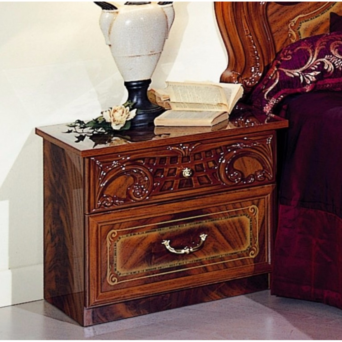 Прикроватная тумба Роза (орех) от Российской фабрики "ДИА мебель". Выполнена в классическом стиле. Она имеет два открывающихся ящика. Ручки цвета позолоты придают богатую атмосферу. Маленькая, но очень вместительная и удобная тумбочка удивит Вас своей многофункциональностью. Выполнена в ореховом цвете и покрыта глянцем. Такая тумбочка подчеркнет чувства стиля любого владельца классического стиля.