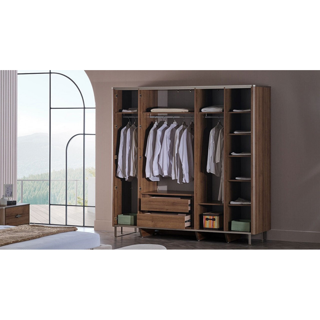 с полками,со штангой,каленое стеклоМатериал корпуса