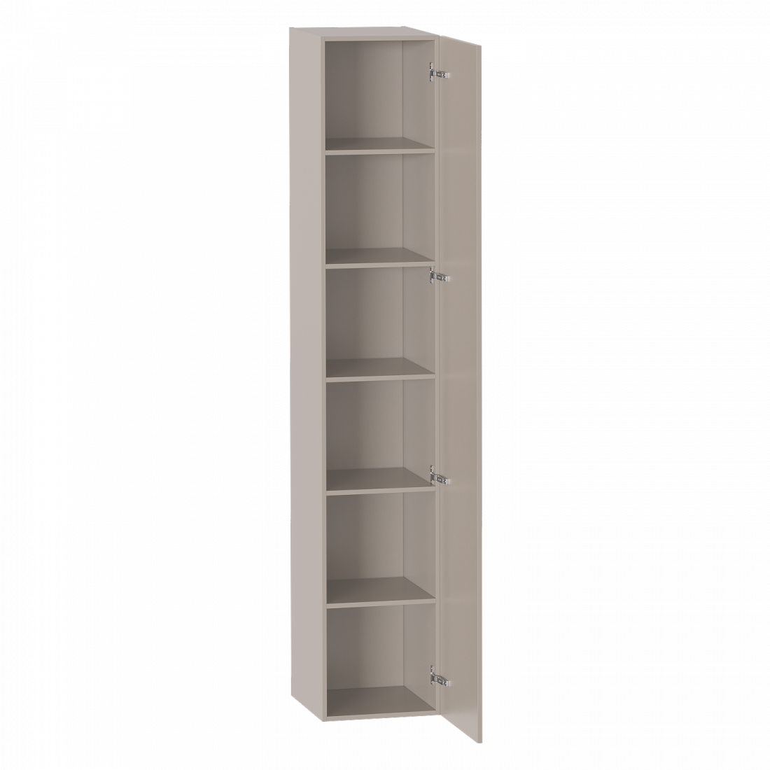 Шкаф однодверный выполнен из ЛДСП цвета Капучино и имеет 6 вместительных полок. Открывание двери возможно на левую и правую сторону. Ручки в форме скобы выполнены из белого матового металла. Все петли - плавного закрывания.