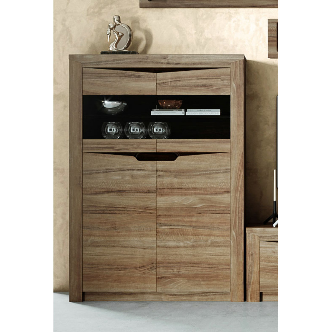 Шкаф-витрина Соренто двухдверный дуб стирлинг порадует ценителей лаконичных форм своими простыми, современными линиями и приятной светлой деревянной текстурой.