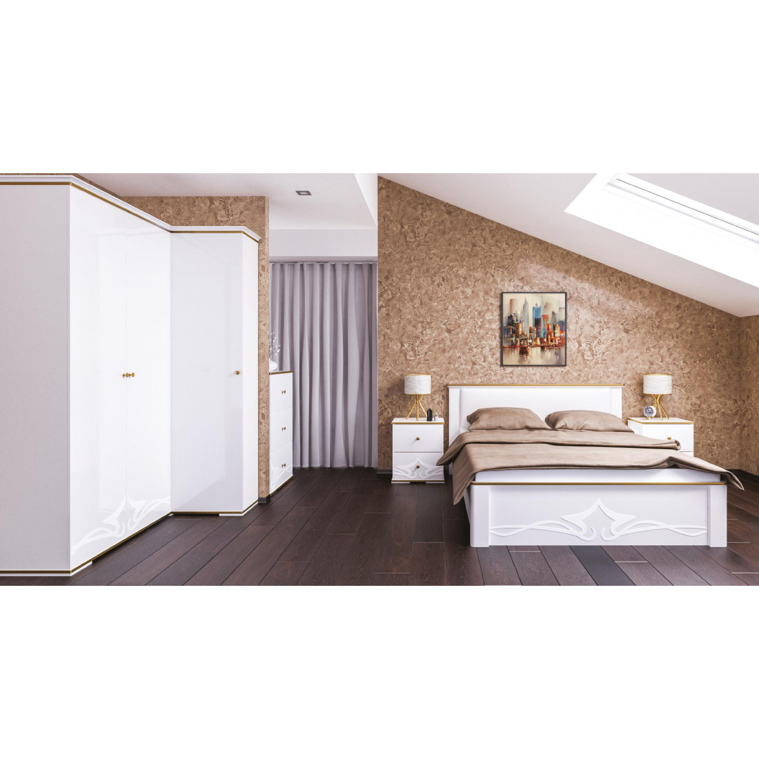 Спальня Либерти композиция 4  с угловым трехдверным шкафом, комодом, двухспальней кроватью и тумбочками.