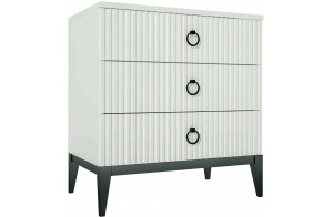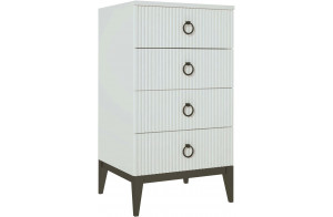 - Фасады изготовлены из МДФ 16 мм с изящной линейной вертикальной фрезеровкой и окутаны белой матовой плёнкой ПВХ.