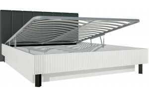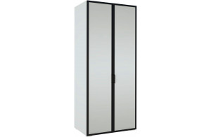 Модульная коллекция мебели для спальни "Хилтон" выполнена в современном стиле. Предполагает большую вариативность по размерам и функционалу в создании композиций как шкафных групп, так и малых форм. Строгость линий и геометрически правильных форм поддержаны контрастным цветовым решением: чистый белый цвет каркаса и фасадов в сочетании с чёрной матовой фурнитурой и тёмно-серыми рамками фасадов с зеркалами и деревянных опор.